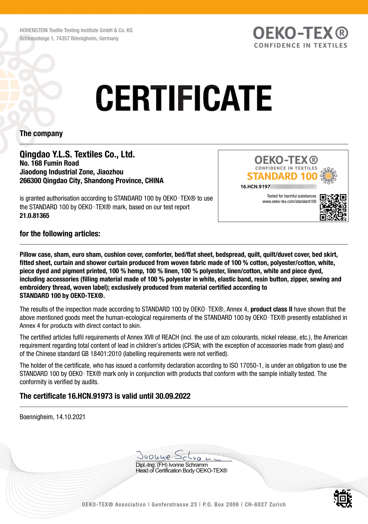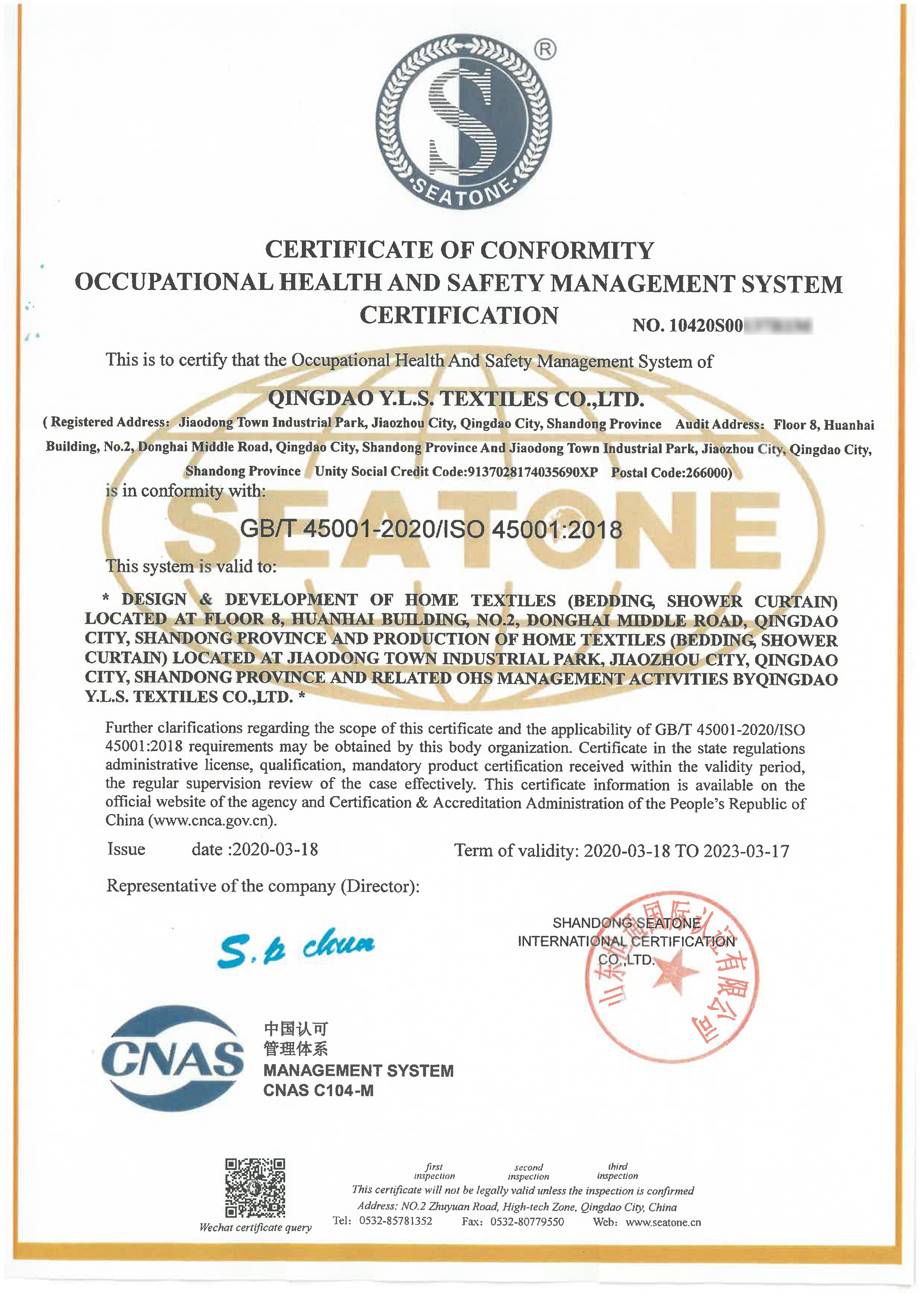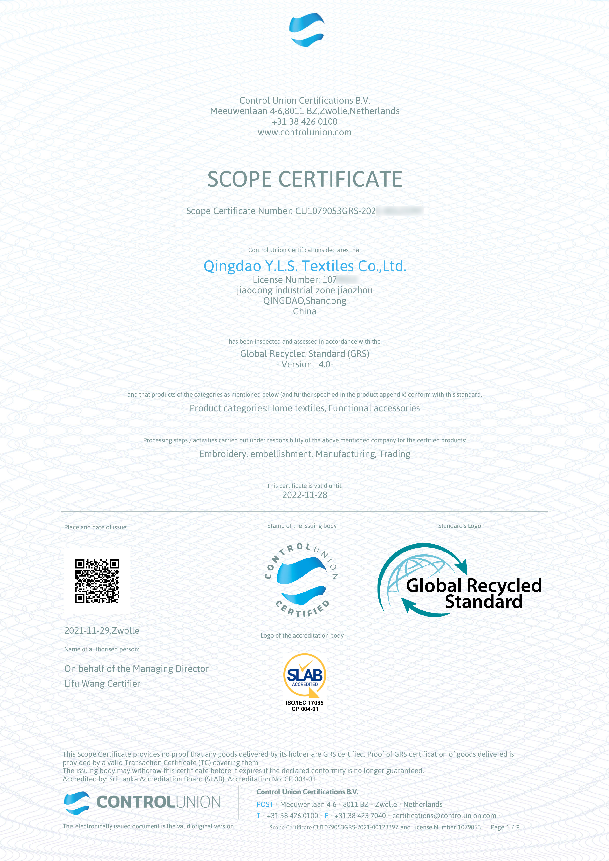 Copyright 2020 Qingdao Y.L.S. Textiles Co., Ltd.